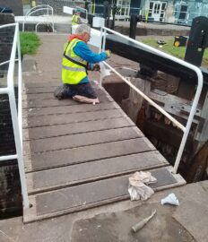 Thursday 25th September – A week later than usual, but we struck lucky with the weather to start work on Locks 41. 5 of us were in attendance on Thursday and 2 for the follow-up on Friday and we made full use of the pleasant weather conditions. We prepped and painted as much of the woodwork as we could given that the locks are currently closed. We were also able to tackle the lock ladders and some metal mooring posts. There’s plenty of metalwork on the lock gear and surrounding rails and fence work yet to be started which will keep us busy on the next couple of visits.
